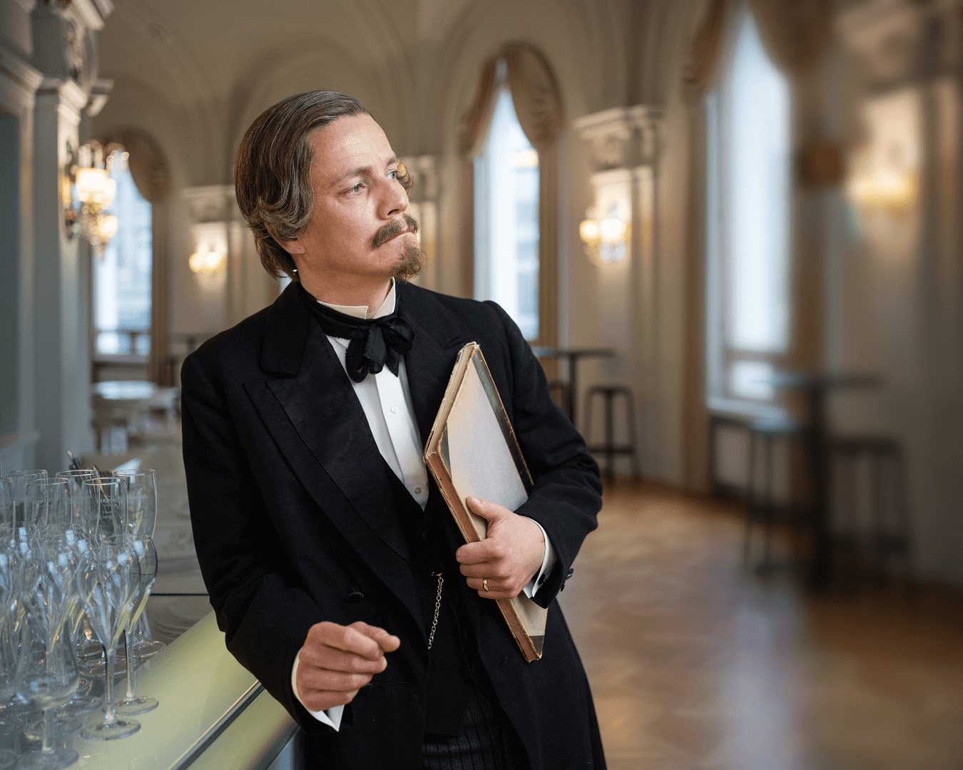 This text is a summary of the content of the walking tour. A new heading indicates a transition to the next space. It is characteristic of a guided tour that it adapts to the group at hand. At times, something mentioned in the summary may be left out, or Topelius may say something beyond it. You are welcome to ask him questions in English if something is unclear. You may also turn to the front-of-house host, who speaks English.