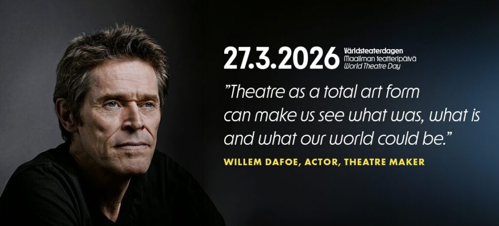 Maailman teatteripäivän julistus 2026 kirjoittanut Willem DAFOE