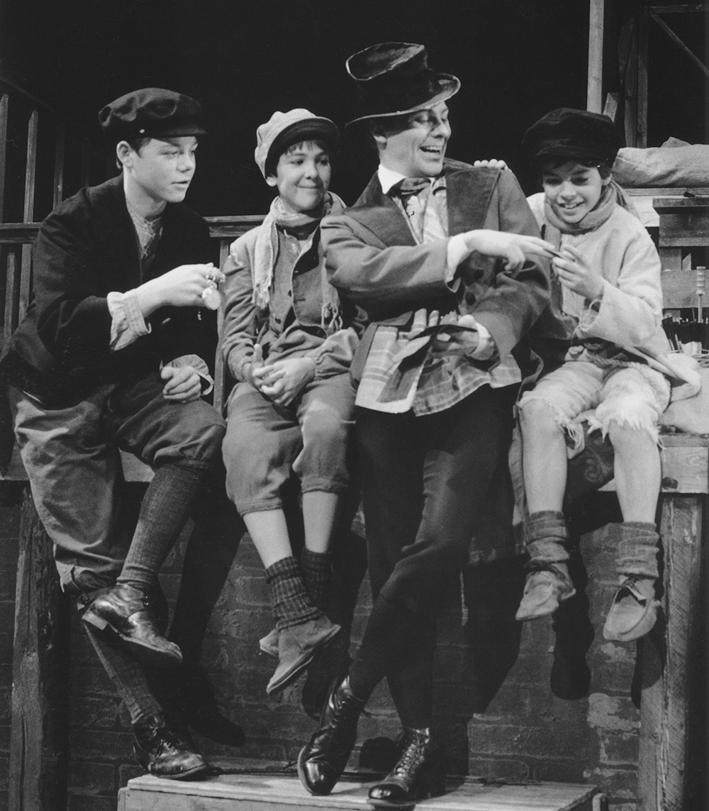 Musikalen Oliver! Patrick Henriksen, Robert Ahlbäck, Peppe Forsblom och Christopher Romberg. 1991. Foto: Peter Sandberg.