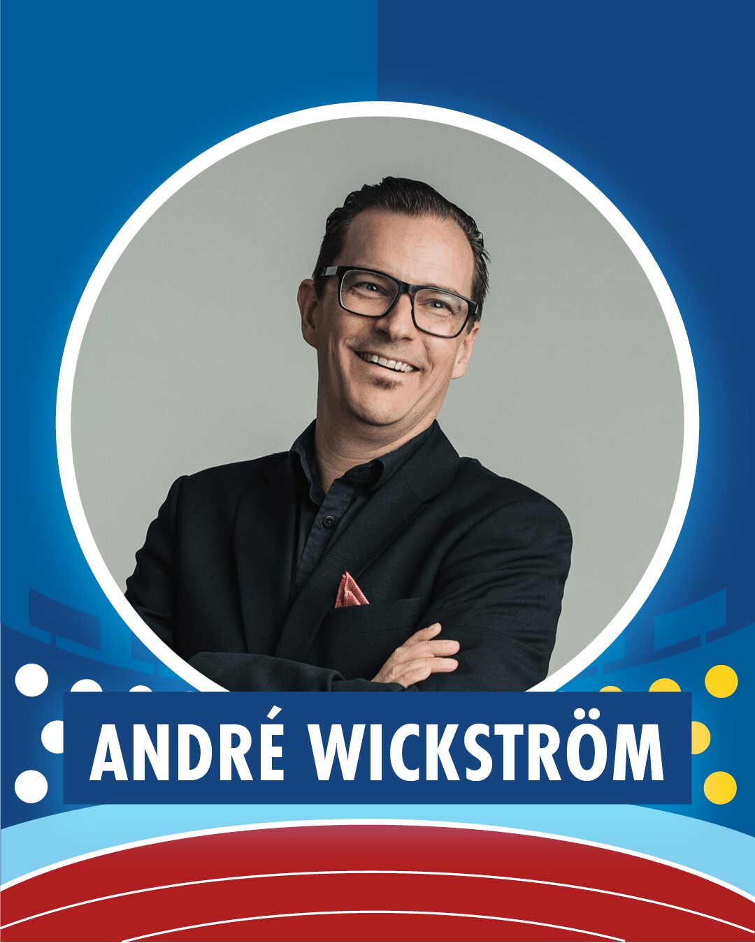 André Wickström behöver kanske inte någon närmare presentation för den inhemska publiken. Wickström är komiker på heltid sedan 2003. Den rikssvenska publiken känner igen Wickström från TV-serien Solsidan och humorprogrammet Parlamentet.